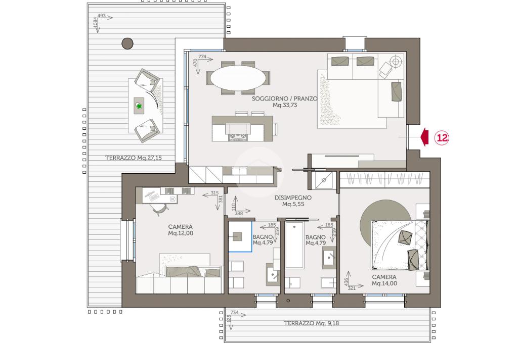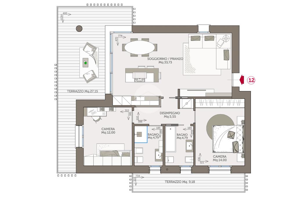 Trilocale Attico con terrazzo di nuova costruzione;